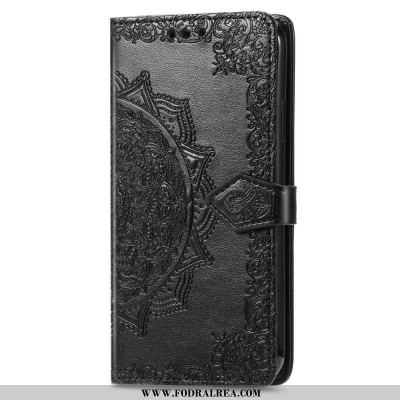 Ett Suveränt Skal Till Samsung Galaxy A13. Dekorerat Med En Medeltida Mandala, Som Helt Säkrar Den Samtidigt Som Den Fungerar Som Plånbok.