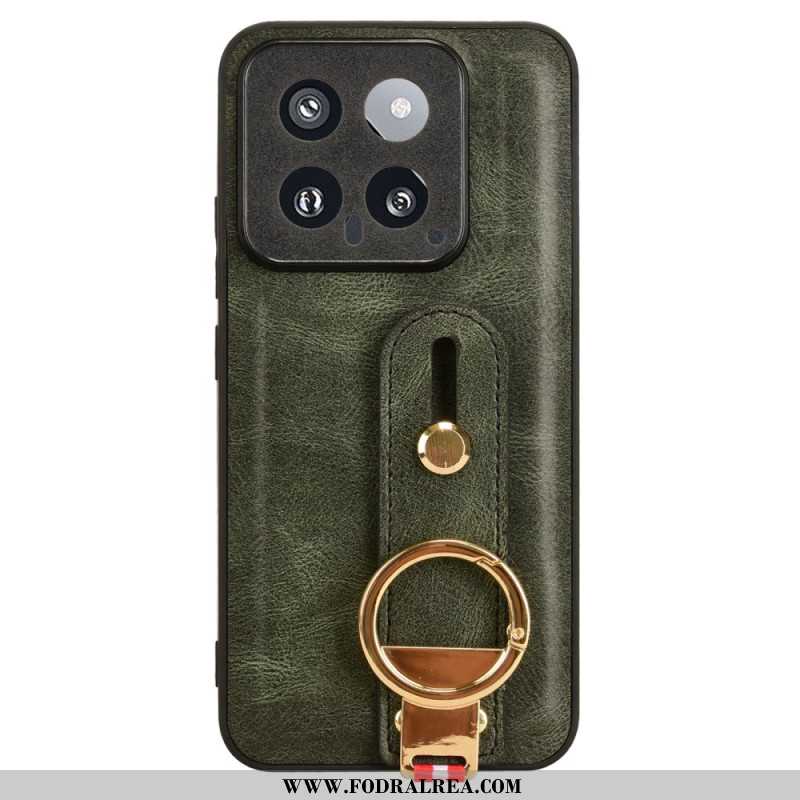 Det Här Telefonfodralet Är Designat För Xiaomi 14 Och Har Ett Band Som Gör Det Lätt Att Bära Och Hantera.